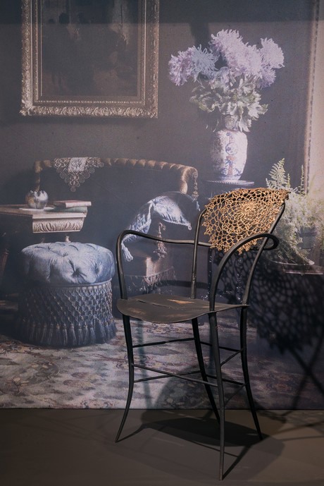 Het beschermen van de meubels door ze af te dekken fascineert Ruben. Het tast de esthetiek van het ontwerp aan dat door de oorspronkelijke ontwerper zorgvuldig is uitgedacht en druist in tegen het rechtvaardigheidsgevoel van Ruben. “Daarnaast vraag ik me af wat beschermen inhoudt. Is onze westerse maatschappij niet té gericht op het beschermen waardoor je vergeet te genieten van het leven zoals het is? Hoe erg is het eigenlijk om een risico te nemen als daar vrijheid tegenover staat”, aldus Ruben. Hij vertaalt deze gedachten in een stoel, gemaakt uit massief gegoten brons. Het frame dat is blootgesteld is zichtbaar aangetast. De rugleuning waarop de antimakassar rust is volledig intact.