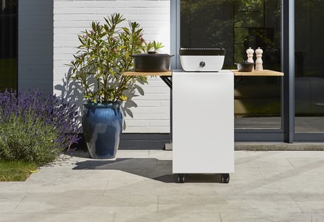 De compacte terraskeuken werd op de Biënnale Interieur in Kortrijk gepresenteerd door Frédéric.
