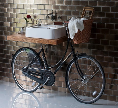 Het proces begint met een echte Princess-fiets. Handgemaakt van staal in de fabriek te Stratford-upon-Avon. In plaats van een leren zitting ondersteunt een aan de wand gemonteerde walnootplank Crosswater's Arcade glasachtige wastafel, die bestaat uit verchroomde messing fittingen. De rieten mand is uiteraard ook aanwezig in het ontwerp en handig voor de gebruiker om zijn of haar toiletspullen in op te bergen.