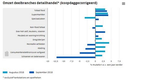 De detailhandel heeft in september 1,7 procent meer omgezet dan in september 2017, meldt het CBS. Het verkoopvolume groeide met 1,9 procent. In de non-foodsector kromp de omzet met bijna 1 procent kromp, terwijl er online bijna 13 procent meer is omgezet. De winkels in doe-het-zelfartikelen, keukens en vloeren daarentegen realiseerden in september de grootste omzetstijging: +3,1 procent. Ook de winkels in meubels en woninginrichting hebben meer omgezet: + 1,0 procent. Directeur Len de Koster van ETC Design Center Europe laat desgevraagd weten dat ook hij merkt dat het weer de goede kant opgaat.