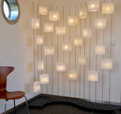 Onze samenwerking heeft geleid tot een serie lampen variërend van een simpele tafellamp tot een complete modulaire roomdivider. Het motto van de Paternoster is ‘bouwen met licht’ en de klant kan zelf bouwen en zo zijn lamp samenstellen."