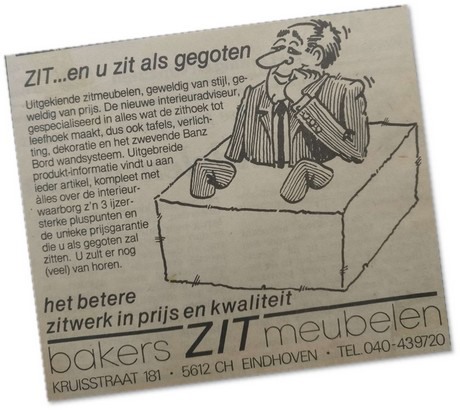 Een honderdjarig jubileum: het komt niet heel vaak voor. Bakers Zitten & Wonen te Eindhoven mag het deze maand beleven. De winkel is opgericht in 1918. Moeke Bakers, de betovergrootmoeder van de huidige eigenaar Max Bakers (48), is in het huidige pand aan de Kruisstraat begonnen met de verkoop van textiel. Opa Bakers is er op 14-jarige leeftijd bijgekomen en heeft later de meubellijn geïntroduceerd. "Als Bakers wilden we toen de complete wooninrichting bieden: van stoffering tot bedden en van eetkamertafels tot vloerkleden. We verhuisden met de zaak eind jaren ’60 tijdelijk naar de Markt maar kwamen in 1983 terug op de het oude en tevens huidige adres: Kruisstraat 181 in Woensel", laat Max weten.