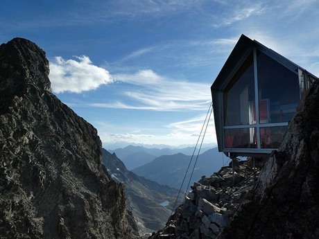 De Italiaanse architecten Dini en Stefano Girodo hebben een klein prefabhuis ontwikkeld, dat is geplaatst op een afgelegen bergtop in de Apuaanse Alpen in het noorden van Italië. De locatie van het prefabhuis bevindt zich op een hoogte van 3290 meter boven de zeespiegel.