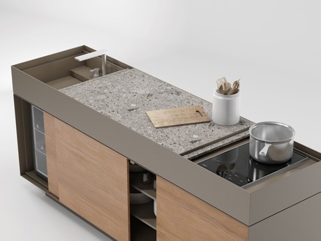 De Spaanse ontwerper en fabrikant van tuinmeubilair Kettal heeft een nieuwe buitenkeuken in haar assortiment. Deze valt op door de eenvoudige lijnen en is gemaakt van aluminium met een optie voor teakhout-deuren. Het werkblad Ceppo di Gré sluit volledig dankzij de beweegbare panelen.