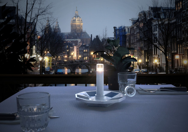 "Miss Nightingale is een elegante kaarslamp die staat voor bewustzijn en verantwoordelijkheid van onze leefomgeving. De Solar lamp kan zowel binnen als buiten worden gebruikt en is verkrijgbaar in wit, matzwart, doorzichtig plastic en nikkel. De heldere en warme LED lamp is duurzaam en veilig. Ongeacht op welke locatie te gebruiken, zelfs op plekken waar geen elektriciteit beschikbaar is", laat Annet weten.