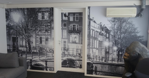 “Op dit moment is fotobehang - ook wel airtex genoemd - populair. De klant kan een eigen foto aanleveren en deze printen we op het behang zodat je de muren kunt beplakken met je eigen unieke foto. We hebben er een plakservice bij met onze eigen behangers die het behang op locatie kunnen plakken als de klant dat wenst", aldus Boersma.