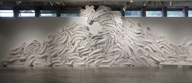 Hoe bijzonder is deze papierkunst aan de muur? Kunstenaar Jae Ko ontdekte in 1996 een manier om de rollen papier, die voor kassa´s en rekenmachines worden gemaakt, als materiaal voor haar werk te gebruiken. Het vormen en kleuren van het papier, dat vaak gerold is met behulp van een draaischijf, gaat samen met een serie experimentele werken die de manier behandelen waarop papier zich gedraagt als het in contact komt met water en aarde.
