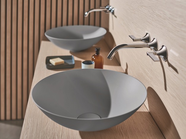 producten. De waskommen met de beide nieuwe oppervlakken worden in maart 2019 op de ISH in Frankfurt gepresenteerd: 'Terra' valt op door een mat, uniek poederachtig oppervlak en fijn afgestemde