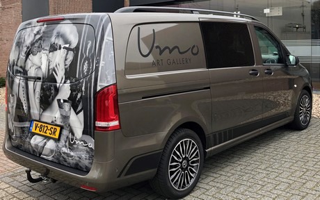 De achterklep van de bus van Umo is uiteraard voorzien van een opvallende foto van Jordi Gómez...