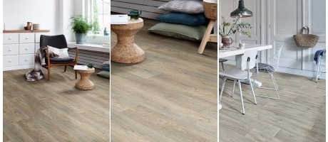 Interfloor haalt de natuur binnen met de nieuwe collectie vinylvloeren genaamd Modern Wood. Deze serie bevat 11 houtdessins, van klassiek en rustiek eiken tot licht essen in diverse naturel en grijstinten. De 100- en 200-serie hebben een dessin met robuuste planken van 150 cm lang bij 20 cm breed. De 300-serie heeft fijnere planken van 120 x 16,7 cm die in de juiste richting gelegd een ruimte optisch groter zullen maken.