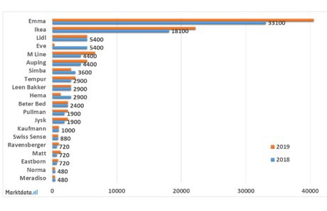 In de top tien van meest gezochte merken matrassen via Google in Nederland in de periode 2018 t/m februari 2019 staat Emma stevig op de eerste plaats. In 2018 leverde het merk een gemiddeld maandelijks zoekvolume van ruim 33.000 zoekopdrachten op. Ikea volgt op de tweede plaats met een maandelijks zoekvolume van ruim 18.000 zoekopdrachten. Beide merken matrassen laten over de eerste twee maanden van 2019 een versterking van hun positie zien; het zoekvolume van Emma en Ikea matrassen neemt flink toe. Dat conludeert Marktdata, een bureau voor onafhankelijk marktonderzoek en marketingadvies.