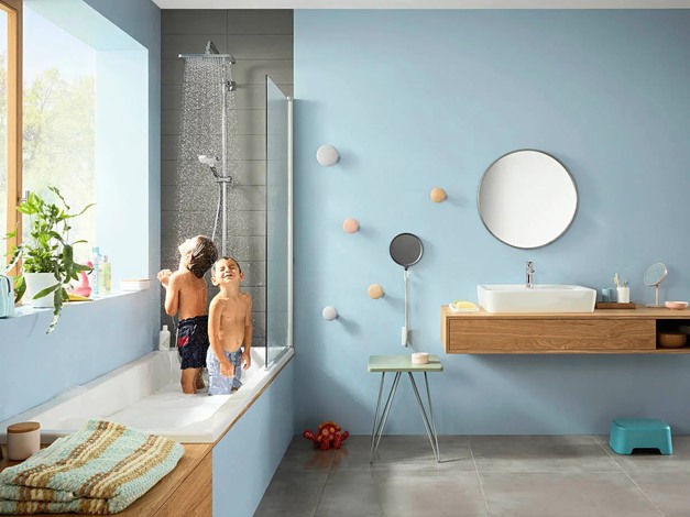 CoolContact laat esthetiek en veiligheid hand in hand gaan. De badkamer is een plek voor het hele gezin. Dankzij de nieuwe functies van de lijn Croma E die de autonomie stimuleert kunnen kinderen snel zonder hulp in de douche. Met de nieuwe koeltechniek CoolContact wordt het binnenkomende koude water zo geleid dat het rechtstreeks achter de voor- en bovenzijde en tot aan het thermostatische patroon stroomt. Warm water daarentegen wordt rechtstreeks van de wandverbinding naar het patroon geleid. Dit voorkomt dat de thermostaatbehuizing opwarmt en dus permanent koud en veilig blijft. Extra veiligheidsfunctie: de SafetyStop op de thermostaatgreep voorkomt dat er te warm water uit de douche komt.
