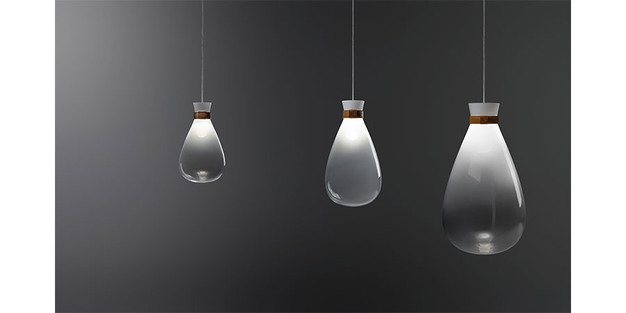 De zuiverheid van licht en glas geblazen door bekwame Venetiaanse ambachtslieden; Soffi. Gam Fratesi's minimalistische ontwerp legt het exacte moment vast waarop de blaastechniek het glas zijn vorm geeft. Gevoelige en onregelmatige bollen lijken voort te komen uit een slanke riem van zadelleder, opgehangen in de ruimte door zwaartekracht.