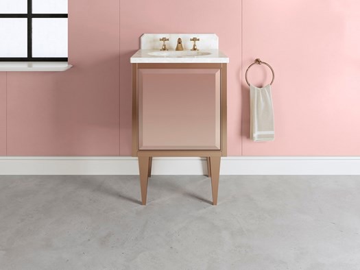 Him en Her zijn compacte wasbakkasten, gemaakt van kostbare grondstoffen en verfijnde afwerkingen die passen bij een verrassende harmonie, met een esthetiek gemaakt van eenvoudige en essentiële lijnen. De Him-versie is grijs met zwart en de Her-versie is roze. Het interieur van de wastafel, mat zwart voor beide versies, heeft een verwijderbare lade. De compacte afmetingen van de wastafels (de breedte is slechts 57 cm) zijn het antwoord van Devon & Devon op de behoeften van mensen met beperkte ruimte.