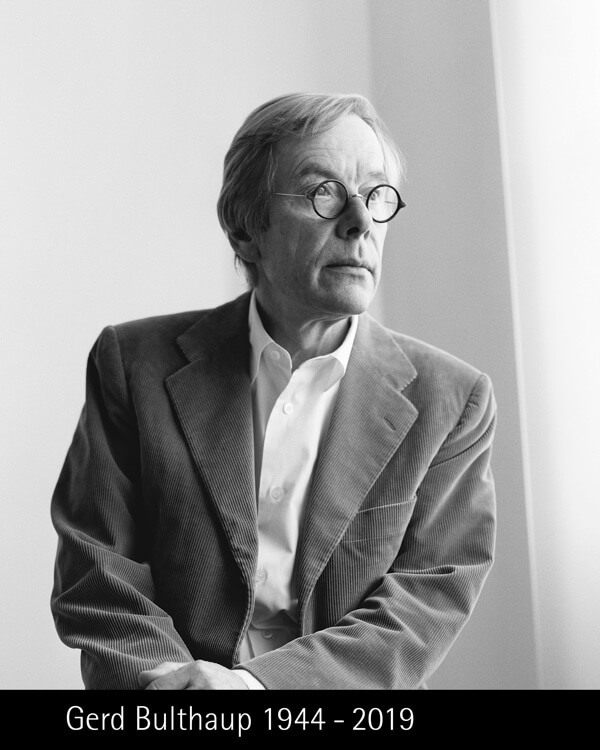 Na een korte ziekte is Gerd Bulthaup op 1 augustus j. overleden. Gerd Bulthaup, geboren in 1944, leidde het familiebedrijf Bulthaup als tweede generatie in de periode 1979 tot 2003. Na zijn vertrek begeleidde hij de onderneming als aandeelhouder in toezicht- en adviesfuncties.