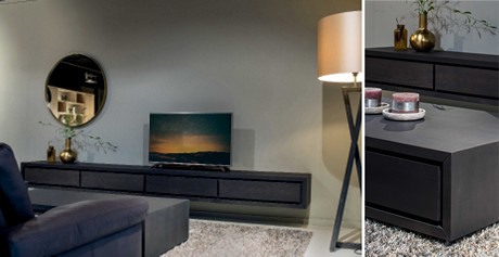De stijlen met hoeken in verstek gecombineerd met strakke fronten typeren de Canyon collectie. De meubelen hebben een uitstraling die past in een stijlvol of strak, landelijk interieur. De deuren en laden hebben geïntegreerde grepen die een eenheid vormen met de ruimte om het front.