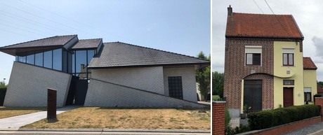 Twee huizen die Hannes fotografeerde en verspreidde via social media als 'Ugly Belgian Houses'. FOTO: Twitter UglyBelgianHouses