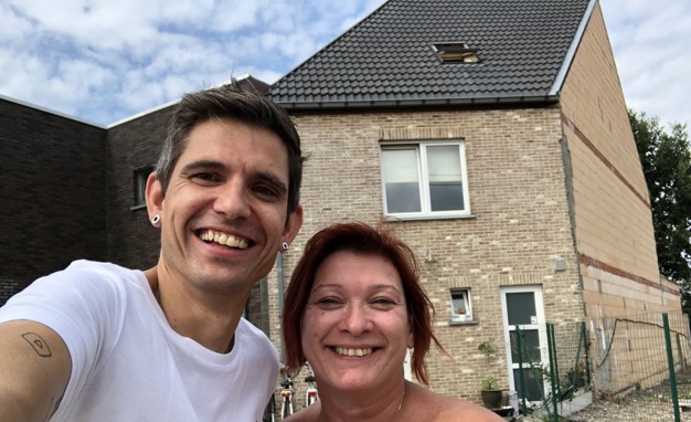 Hannes met een van de eigenaren op de foto. FOTO: Twitter UglyBelgianHouse