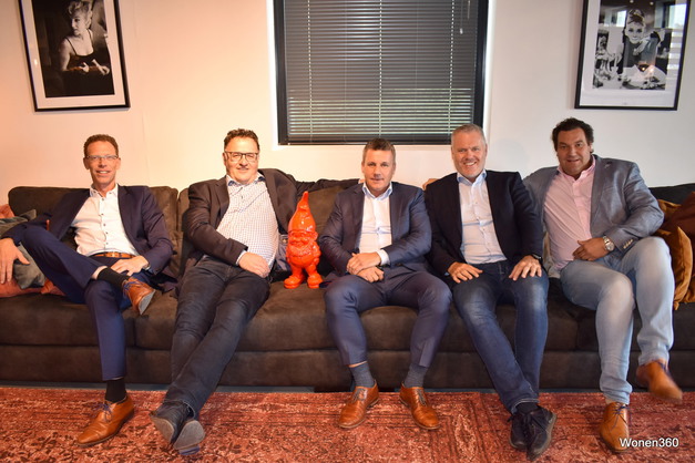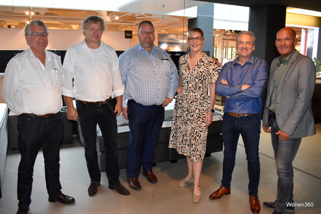 Het team van Confortluxe & Lievens Meubelfabriek, met v.l.n.r. Bart Veenhuizen, Jeroen van der Borg, Frank Flipse, Filip van de Vyvere en Steven Cottyn.