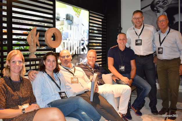Vorige week donderdag had Passe Partout de hele showroom in DWI leeggetrokken, maar toen de VAKbeurs eenmaal begonnen was, stond alles weer op zijn plaats en leek het als je een compleet nieuwe winkel binnenstapte. Sfeer, dat vindt directeur Dirk Steenbeke dan ook heel belangrijk: "Wij verkopen geen meubelen, maar een beleving. Daar staan we al jaren voor", benadrukt hij.Gezelligheid bij Passe Partout, met v.l.n.r. Ellen Wiffrie (dochter van Ruud), Kim Steenbeke (nichtje van Dirk), Henri Schepers, Remco de Vries, Didier Puylaert, Dirk Steenbeke en Ruud Wiffrie.