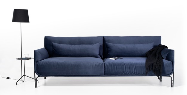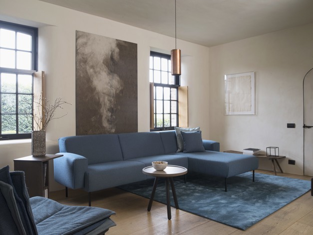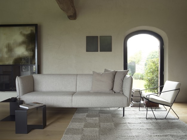 De verhoudingen in de sofa zijn eenvoudig en puur zodat alle grafische lijnen aandacht krijgen. Door de lichte sledevoet lijkt de sofa te zweven, waardoor het geheel licht en luchtig blijft.