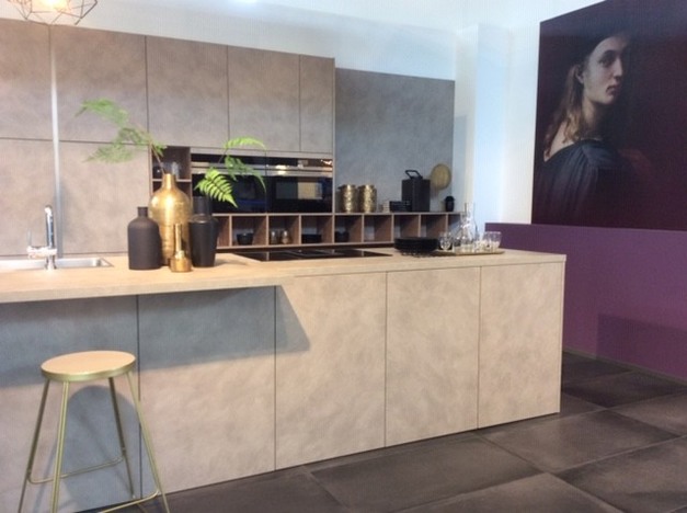Ook ziet Keukens en Interieurs Online keukens met verschillende fronten, die verschillend zijn in kleur, maar ook in materiaal. Doorlopende fronten tot aan de vloer en betonlook fronten in verschillende kleuren behoren tot de keukentrends van nu.