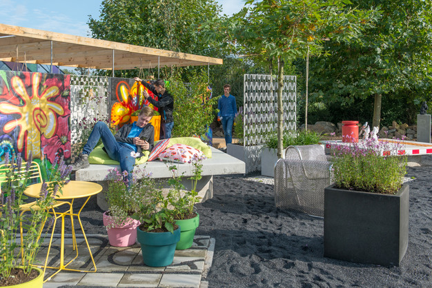 De trend Street Savage zorgt voor alles behalve een geijkte plaatje. Imperfectie en vrijheid vormen het uitgangspunt. In deze voorbeeldtuin is dat vertaalt naar een onconventionele uitstraling met invloeden uit de hiphopscene en van de straat. De industriƫle meubels (om op te chillen) en potten zijn gemaakt van gerecyclede materialen en de schuttingen zijn beschilderd met graffiti. Op de grond ligt halfverharding (Black Sparkle). Dat geeft een streetlook maar, in tegenstelling tot een betonnen vloer, kan het regenwater wel direct de bodem in zakken. Planten staan veelal in potten in vrolijke kleuren. Door te kiezen voor nectarrijk groen kunnen vlinders, bijen en andere bestuivers volop toehappen.