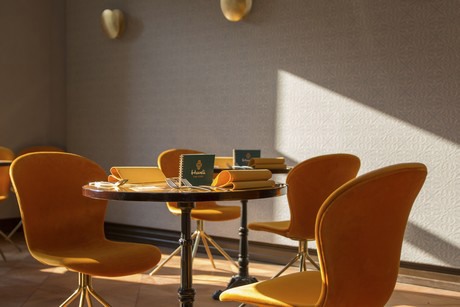 De sfeer van het restaurant is geïnspireerd op de intense kleur van curry, die altijd het hoofdingrediënt is geweest van de Indiase keuken. In overeenstemming met het concept is de verlichting van Catellani & Smith de ideale keuze voor de ruimte. De goudachtige kleur, dat een kostbaar tintje geeft aan de ruimte, komt terug in de lampen Gold Moon en Lederam W, waardoor de dialoog met de stoelen in een levendige okerkleur wordt verlengd.