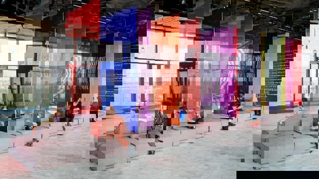 Tijdens de Dutch Design Week (DDW) presenteerde Leolux, in samenwerking met Studio Lonk, een 12 meter lange Leolux Ponton en 14 verschuifbare panelen waarmee persoonlijke ruimte afgebakend kan worden. Wanneer deze panelen verschoven worden, verandert het omgevingsgeluid dat je hoort mee.