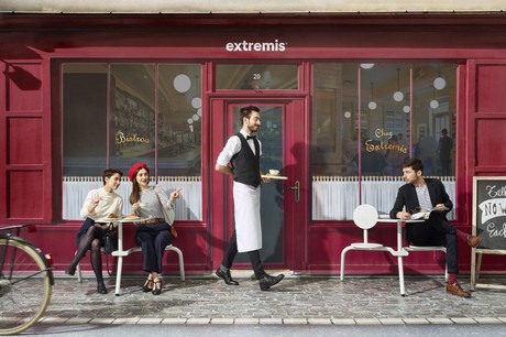 "Een romantische Parijse bistro of een gezellig balkonnetje, dat is de perfecte plek voor Bistroo", aldus Extremis. Bij Bistroo zit je niet tegenover, maar naast elkaar. Zo kan je gezellig dicht bij elkaar zitten terwijl je op professionele wijze de passanten van het nodige commentaar voorziet. Verklaring van de jury: "De Bistroo presenteert zich als een inventieve, fantastische en effectieve zitoplossing voor meerdere doeleinden die beschikbaar is in een aantal kleuren. Gestructureerde, gepoedercoate metalen worden gecombineerd met handige functies en accessoires die resulteren in een praktische, stabiele, weerbestendige stoel voor twee personen en een tafel in één."