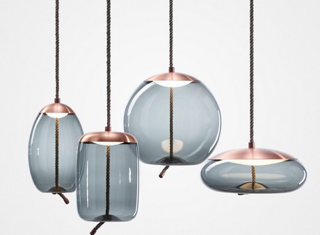Glas is niet alleen een diffuser, maar ook een bijna onzichtbare intermediair tussen de lichtbron en het reflecterende element. De eenvoud en lichtheid van glas worden de belangrijkste kenmerken in drie verschillende gebogen vormen verrijkt met kristal, smoke, barnsteen en lichte amethist tonen.