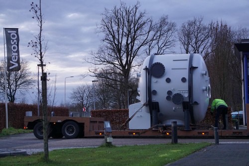 Het lijkt op het eerste oog misschien op een onderzeeër of een futuristische tijdmachine, maar niets is minder waar! Het betreft de eerste hoogvacuum metalliseermachine voor texiel gebouwd door Verolme Verenigde Scheepswerven NV in opdracht van Cornelis Verolme (1900-1981). Oprichter van het bedrijf Verosol Vacuüm Metalising (1965), tegenwoordig Verosol genaamd.