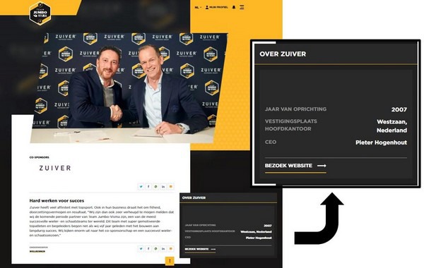 "Een hele eer, maar dat zijn we helaas niet", meldt een woordvoerder van Zuiver BV. "Het betreft namelijk een andere Zuiver: Zuiver Vastgoed Groep. Per ongeluk staan wij en onze CEO Pieter Hogenhout op de website van Team Jumbo-Visma genoemd. Pieter, overigens ook een fanatiek wielrenner, en ook de rest van ons bedrijf heeft naast het ontwerpen en verkopen van design meubelen ook veel affiniteit met sport. We hebben zelfs een eigen gym waar de sporters van team Jumbo-Visma natuurlijk van harte welkom zijn. We zijn dus geen sponsor, maar wel fan! Zuiver Vastgoed, alle andere sponsoren en Team Jumbo-Visma zelf, succes en winnen die tour!!"
