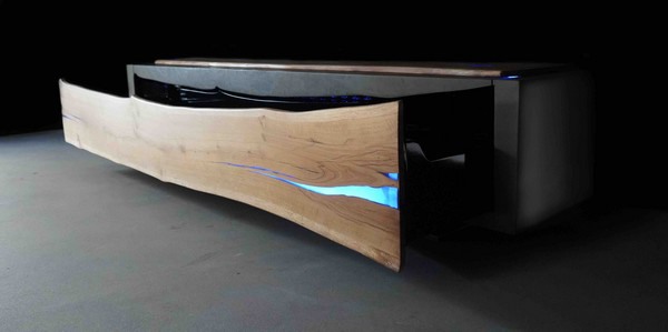 Een van de laatst afgeronde concept slaat een brug tussen de ruigheid van de natuur en de multifunctionele toepasbaarheid. Het dressoir, genaamd 1Ranko, heeft een ruwe boomstructuur, maar is zo verfijnd dat het ook past in een warme en eigentijdse omgeving.