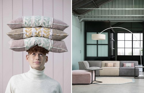 "Buiten onze eigen stand richtten we ook een deel van de perskamer in. De naam zegt het al; hier komt pers, bloggers en influencers. Uiteraard laten we hier weer een hele andere bank zien, de Almond sofa. Deze zweeft over je vloer als een klein eilandje. De sofa is een geweldige en compacte hoekoplossing met veel verschillende opties voor zitten of loungen. Het gestikte kruis aan de zijkant geeft het ontwerp van de Almond extra uitstraling. Doordat we op twee verschillende plekken staan, springt Ginger er nog meer uit hopen we dat het zeker blijft hangen bij de bezoekers."