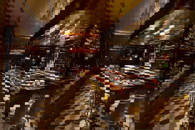 De ontwerpdetails zijn warm hout en slanke gadgets - maar duidelijk LV: bijvoorbeeld, Tokujin Yoshioka ontwierp originele oplaadplaten voor de tafelinstellingen. Een maker voor Objets Nomades Yoshioka staat bekend om zijn moderne, op de natuur geïnspireerde werken. Het interieur zal ook nautische detaillering hebben in een knipoog naar de architectuur van het gebouw als geheel. Het restaurant is ontworpen door Jun Aoki en bedoeld om een drijvend schip op te roepen - de gevel zelf doet denken aan golvende zeilen.
