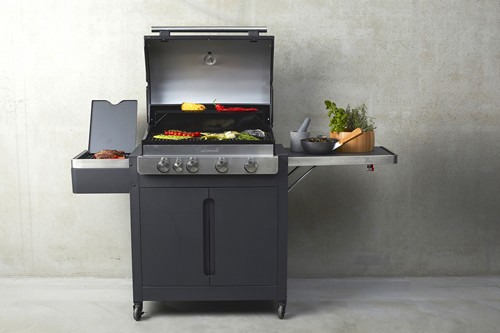 De Barbecook Stella 4311 is een mobiele buitenkeuken met als basis een gasbarbecue met vier branders. Met de One Hand knoppen worden de branders in één draai aangezet en kan de hitte genuanceerd geregeld worden. De geïntegreerde thermometer in het deksel is daarbij onontbeerlijk.