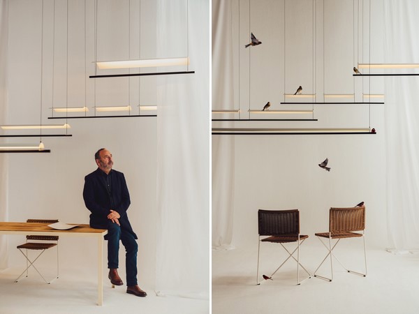 De ontwerper werkt al lang samen met Santa & Cole, en heeft eerder de BlancoWhite-collectie van lichtgevende objecten gemaakt die bovenop tafels kunnen worden geplaatst, en de Cirio-familie van lichten met porseleinen tinten, die het licht filteren om een warme, kaarsachtige gloed te creëren.
