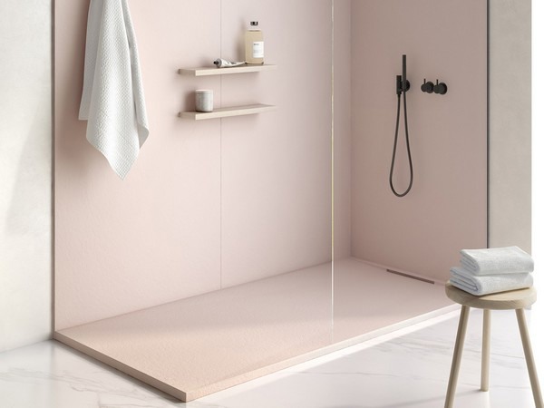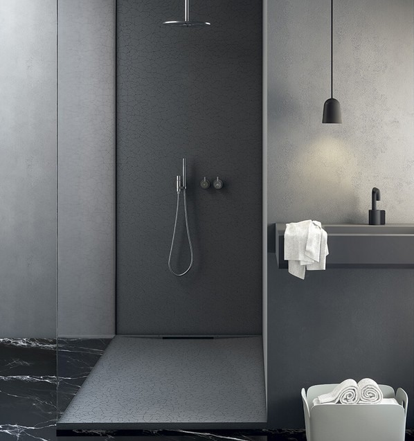 De douchebak heeft een verborgen afvoer in zijn smallere zijde, waardoor deze dichter bij de waterinstallaties komt en reparaties worden verminderd. Het ontwerp met het verborgen afvoerkanaal verbetert ook het uiterlijk van het product.