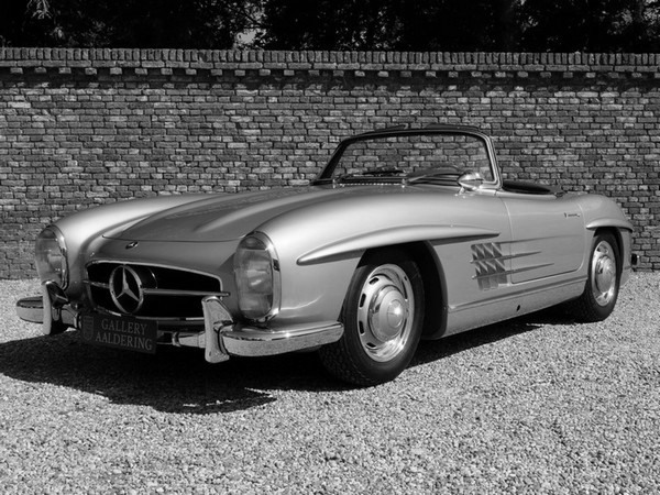 Ik rij al in een hele mooie, fijne auto, maar op mijn wensenlijstje staat een oldtimer Mercedes Benz 300 SL roadster in licht groen/grijzig...