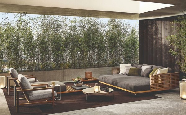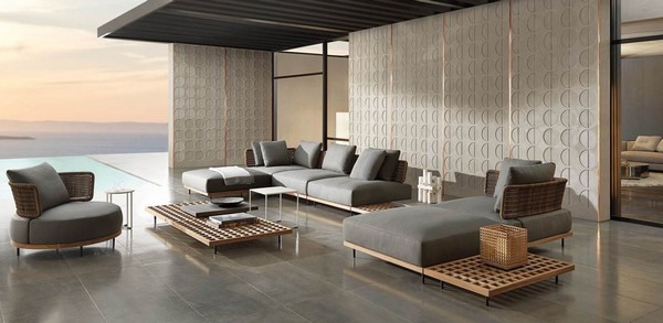 Met onverwachte patronen en kleuren gaat de buitencollectie Lifescape Collection van het Italiaanse Minotti in dialoog met zijn omgeving. Het meubilair en de architectuur vormen een mooi geheel in verschillende omgevingen en heeft als credo ‘in de naam van pure ontspanning’. De collectie is ontworpen om elkaar perfect stilistisch aan te vullen, om te voldoen aan de behoeften van verschillende ruimtes met originaliteit en veelzijdigheid. De verschillende meubels onderscheiden zich door hun formele details en verfijnde esthetiek, evenals afwerking en textuur.