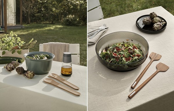 Bij het Toss-it slabestek en de Shake-it dressingshaker van RIG-TIG draait het allemaal om een gezonde levensstijl. Het slabestek is gemaakt van FSC-gecertificeerd beukenhout, en dus gegarandeerd afkomstig uit verantwoord bosbeheer. De vormgeving van Toss-it staat garant voor een elegante Noordse uitstraling en grip, waarmee het slabestek makkelijk te gebruiken is. Zowel de Toss-it als de Shake-it zijn goed te combineren met de Cook & Serve kommen die in drie maten verkrijgbaar zijn in vergrijsd groen en diep blauw.