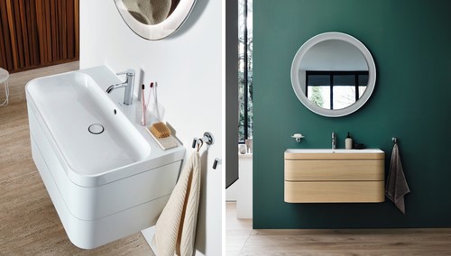Happy D.2 Plus biedt twee nieuwe versies voor de vormgeving van de wastafel, die het basisidee van een elegante expressieve stijlwereld consequent voortzetten met zowel lichte als donkere basis.