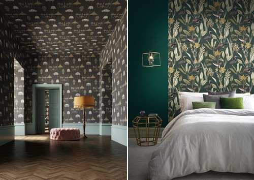 Florale en botanische prints blijven hot, de vernieuwing zit hem in de grootte van de dessins en de combinaties en keuzes van de kleuren. Naast bloempatronen introduceert Graham & Brown het opvallende patroon van getekende kroonluchters die in fraaie kleurstellingen op verschillende achtergrondkleuren zijn geprint. Ter compensatie van deze drukke dessins bevat de collectie ook effen behangen en een grafische print. De verfcollectie vorm de perfecte aanvulling om de woning tot in het detail te decoreren.