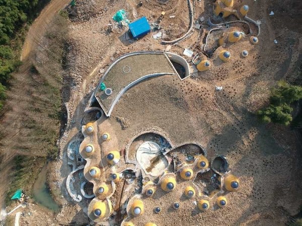 Een luchtopname van het eco resort in wording, dat eind 2020 open gaat.