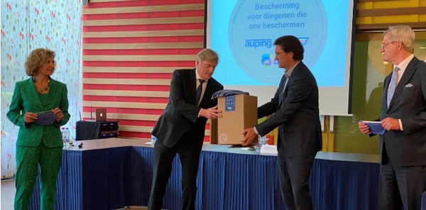 "We zijn gestart met de productie van medische mond- en neusmaskers in Nederland, die zorgmedewerkers beschermen tegen het coronavirus. Vanmiddag hebben we Martin van Rijn, minister voor Medische Zorg, hierover kunnen bijpraten en hem symbolisch de eerste doos overhandigd in het Tergooi ziekenhuis."