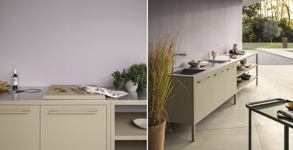 Frame is de naam van een modulair programma op basis van eilanden waarin plaats is voor koken, spoelen en een oven. Dat is uit te breiden met werktafels, hoge en lage wandkasten en een uitgebreid schappensysteem dat ook geschikt is voor de woonruimte.
