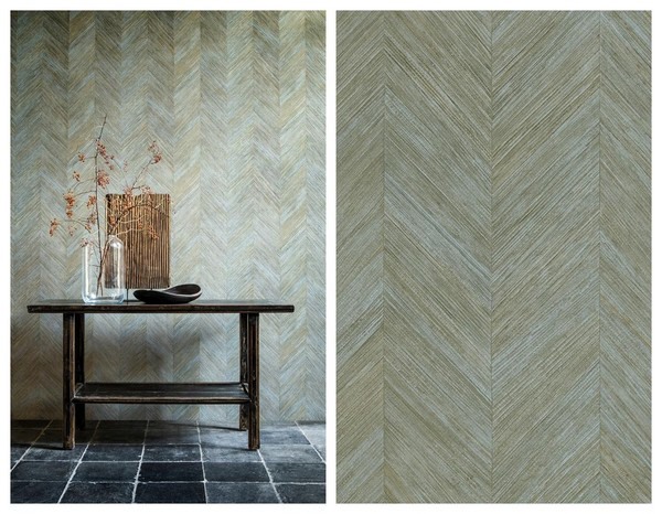Salie is een lichtgroene tint met een zweempje pastel die zich soepel tussen groen en greige nestelt. Arte speelt hier op in en combineert harmonie en moderniteit met de collectie Selva. Dessin Capas charmeert hier door de dakpansgewijze compositie en het zachte, uitgesproken reliëf. De overlappende bananenbladeren creëren verder een rustig geheel doordat de stroken onherkenbaar zijn.