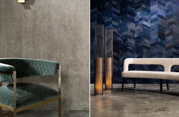 Wil je een rijke en geborgen sfeer creëren? Ga dan voor de diepere blauwtint. Zijn koele ondertoon kan ook warm aanvoelen in combinatie met een bepaald materiaal, zoals leder. Leder is uiterst natuurlijk en duurzaam die zeer warm oogt bij gebruik van de juiste patronen en kleuren. De grove stiknaden op de muur geven een extra stoer karakter. Dit maakt de collectie Les Cuirs van Arte zo uniek en uitzonderlijk.