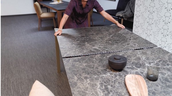 Wat Terra op tafel brengt, is de mogelijkheid om van begin tot eind te genieten van de esthetiek en voordelen van keramiek: niet alleen de bovenkant , maar ook de uitbreiding. Het voorstellen van een keramische uitbreiding, in plaats van een houten uitbreiding zoals die op de Oxford-tafel, vereiste veel onderzoek en ontwikkelingswerk. ''Het resultaat was zeker de moeite waard: door het vermijden van het mengen van hout en keramiek aan de bovenkant, biedt de Terra-tafel een uniform uiterlijk wanneer de uitbreiding wordt ingezet en beantwoordt het aan de reële marktvraag in dat opzicht.''
